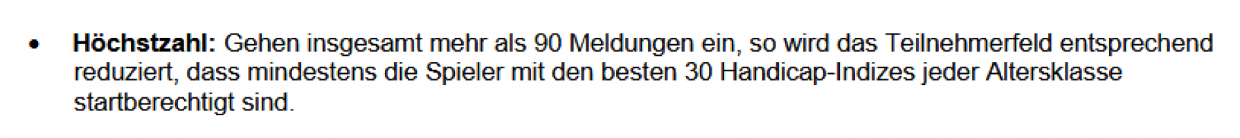 Da es nur 30 Startplätze pro Altersklasse gibt, können 36 Spieler nicht teilnehmen: