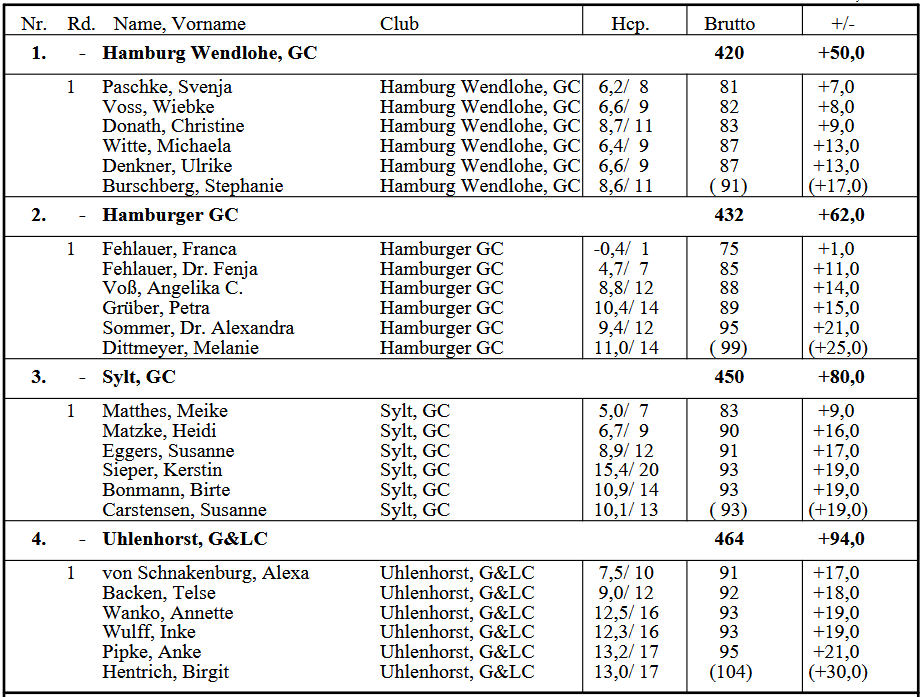 6 | Hamburg Wendlohe, GC | 611 | 107 | 102,8 |