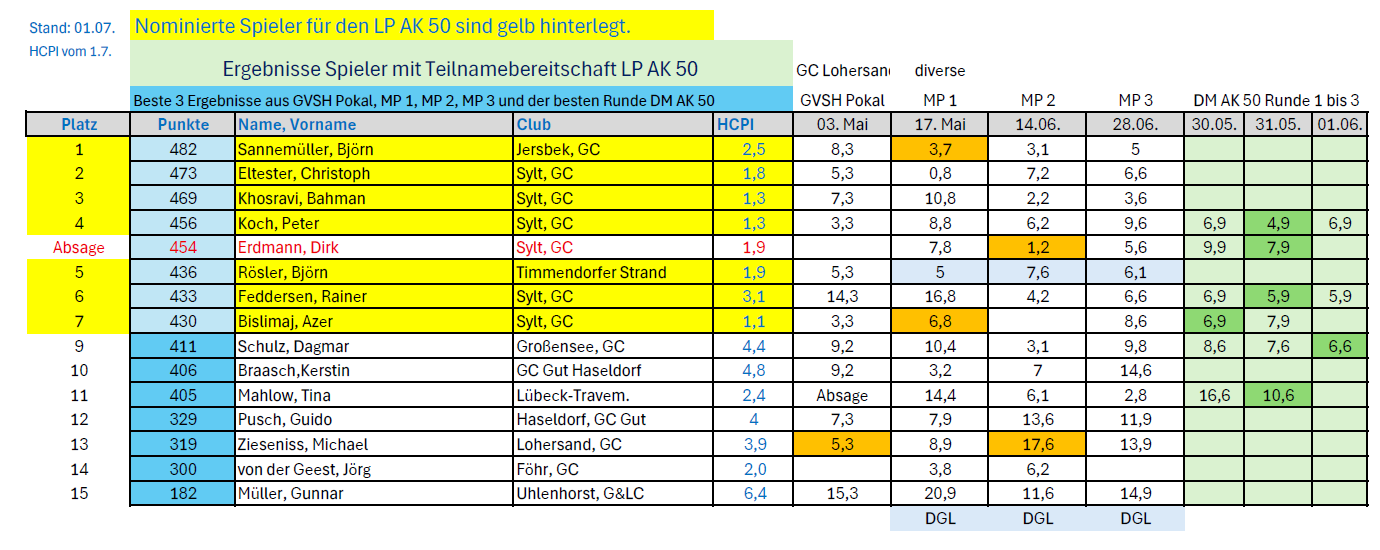 Es gab zwei Abmeldungen: GC Husumer Bucht (G) und Open County (K)