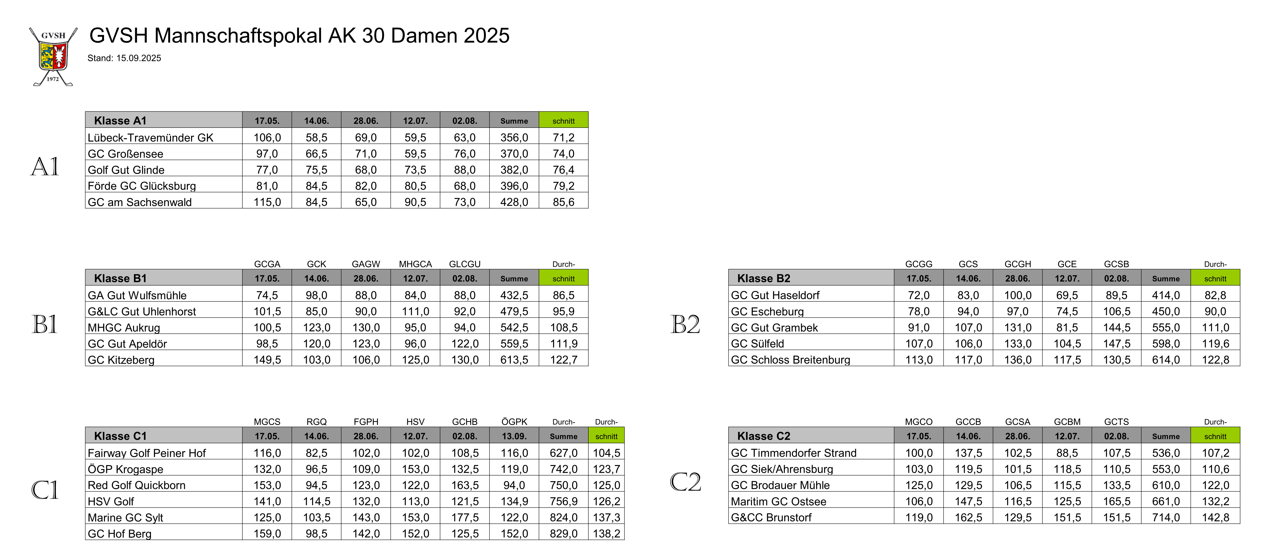 GVSH Mannschaftspokal AK 30 Damen 2025