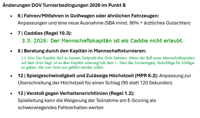 Achtung: 2 Änderungen des DGV bei den DGV Turnierbedingungen 2026 vom 3. März im Punkt B Platzregeln