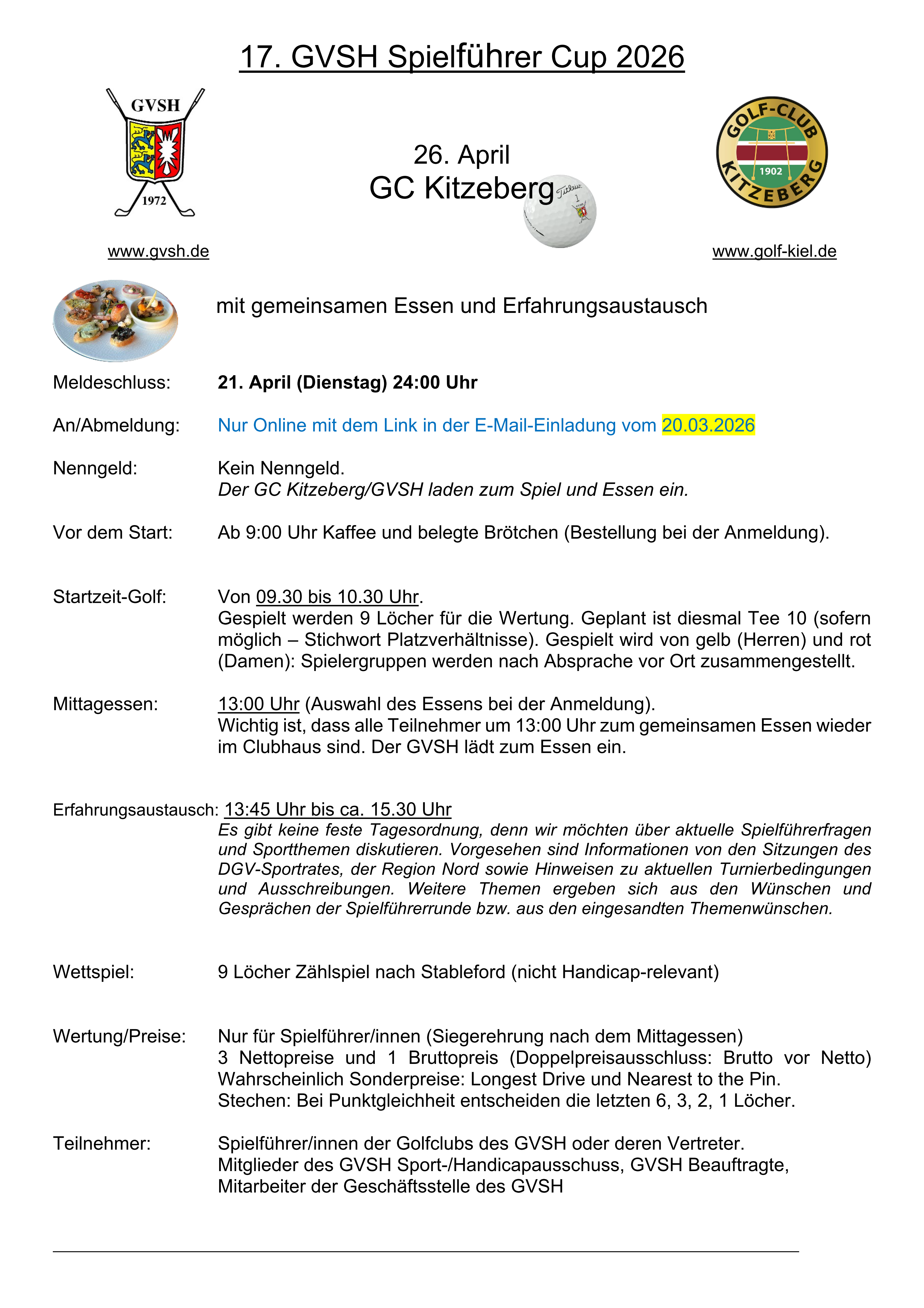 Der GVSH Spielführer Cup findet am 26. April im GC Kitzeberg statt.
