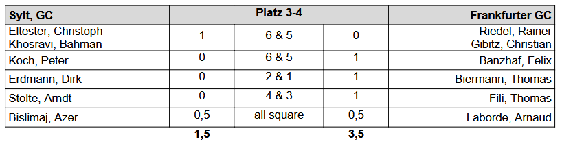 Beim Bundesfinale DMM der Herren AK 65 am 22./23. September in Bad Griesbach belegte die Mannschaft des GC Föhr den vierten Platz nach Computerstechen (Schlaggleich mit Platz 3).