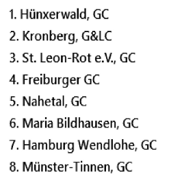 1 | Berlin-Wannsee, G&LC | 585 | 81 | 76,8 |